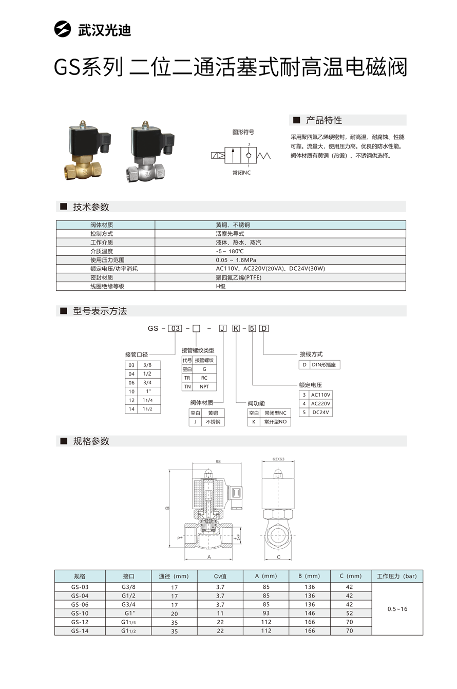 • GS系列 二位二通活塞式耐高温电磁阀
