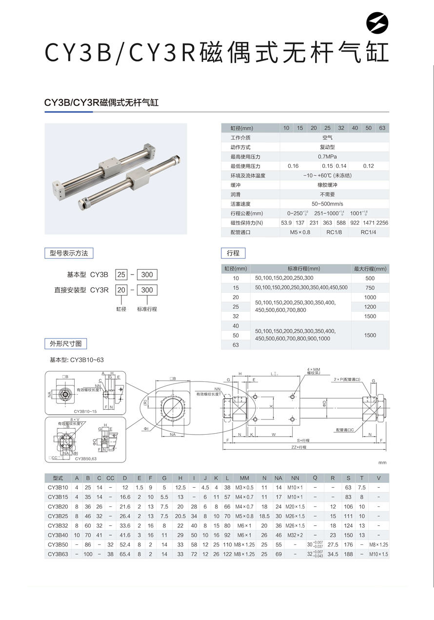 • CY3B/CY3R磁偶式无杆气缸