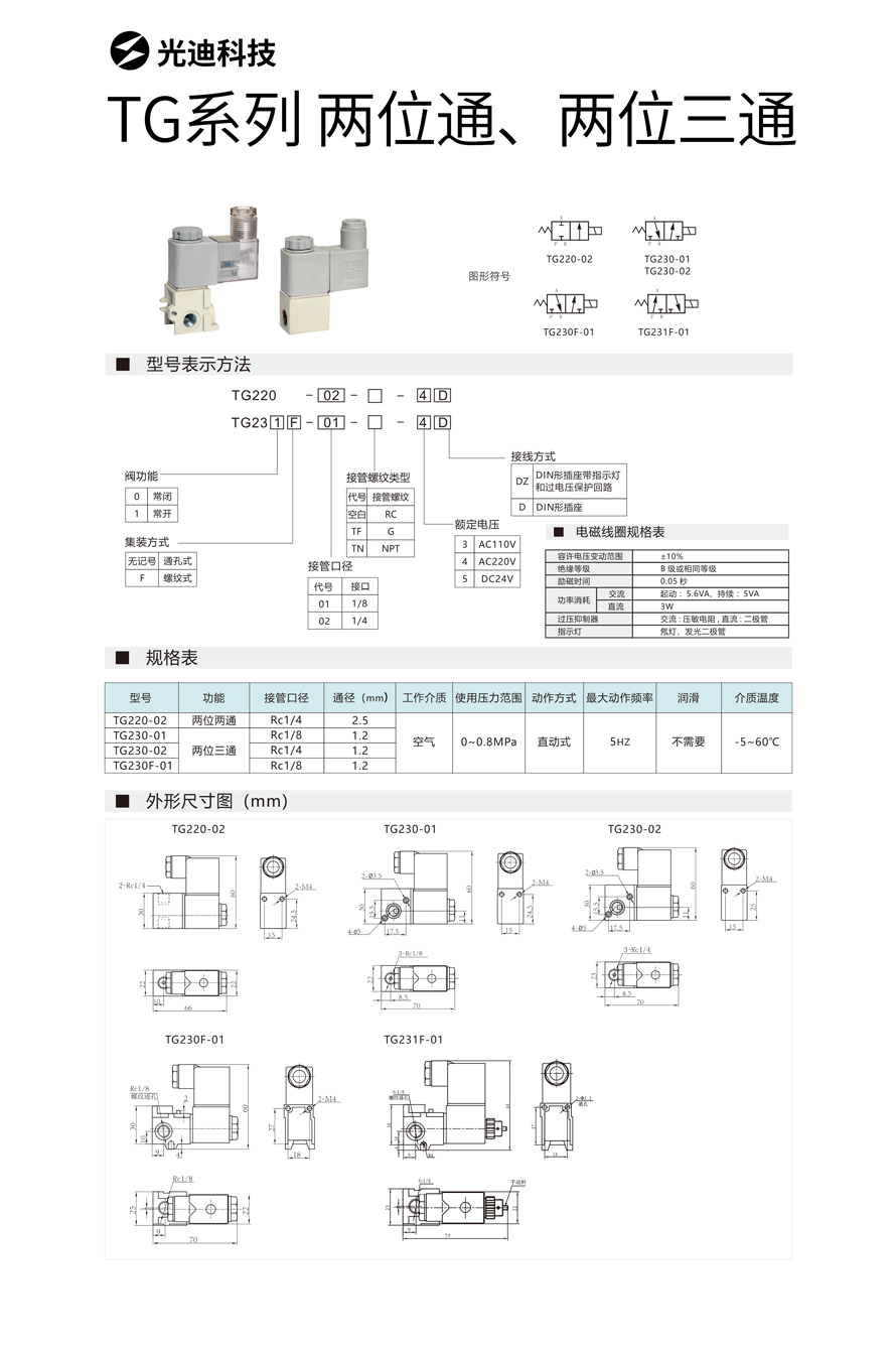 • TG系列 两位两通、两位三通电磁阀